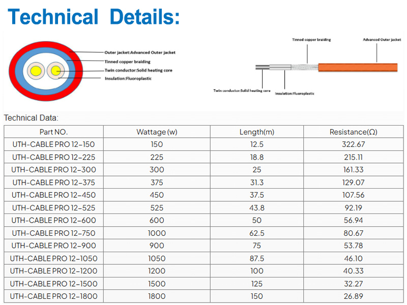 | UTH-CABLE PRO 12-1200 | 1200 | 100 | 40.33 |